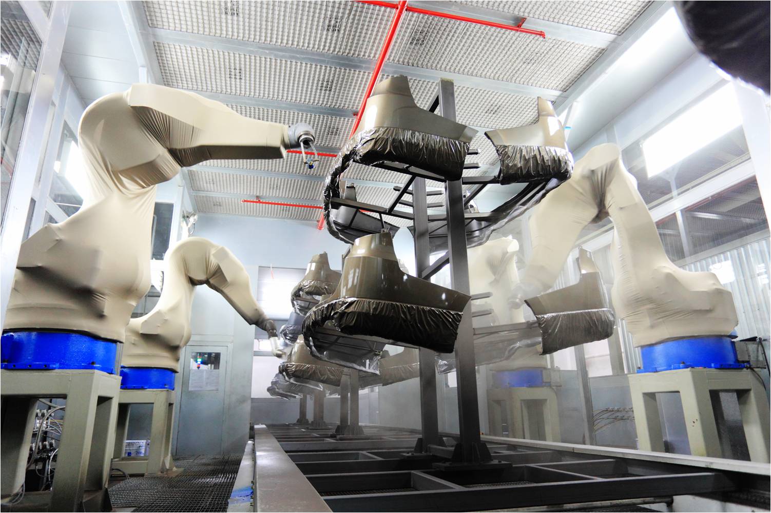 保險(xiǎn)杠自動(dòng)噴涂生產(chǎn)線(xiàn):可并線(xiàn)噴涂包括乘用車(chē)前后保險(xiǎn)杠在內(nèi)的多種產(chǎn)品。