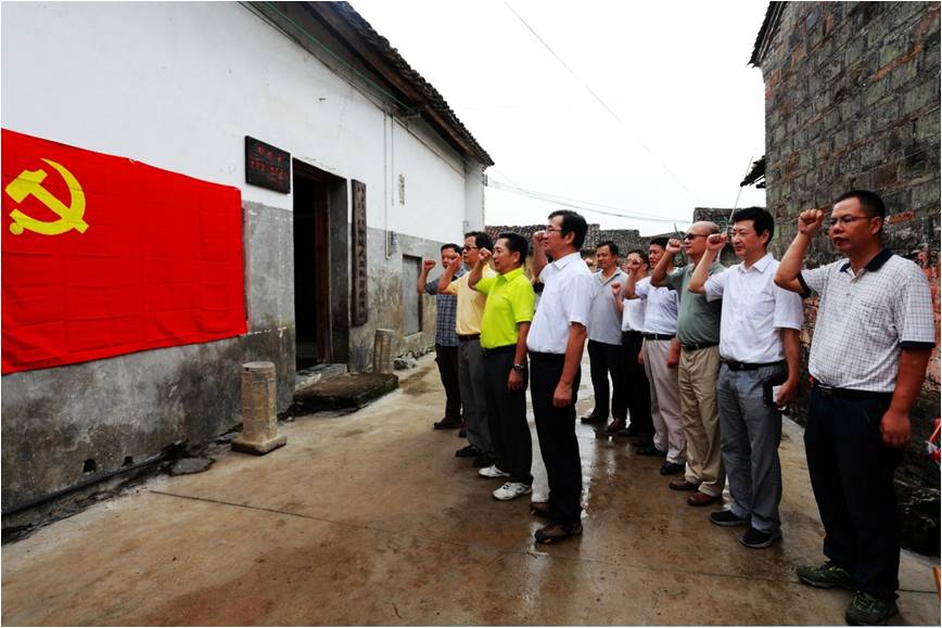 (圖為黨委中心組成員到柳城縣愛國教育基地——桂黔邊人民保衛(wèi)團柳城武工隊活動舊址現(xiàn)場學習)